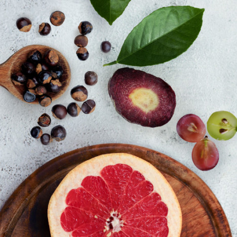 Растительные экстракты: виноград (Vitis vinifera L.), грейпфрут (Citrus paradisi Macfad), зелёный чай (Camellia sinensis L. Kuntze), чёрная морковь (Daucus carota L.), семена гуараны (Fructus Paulliniae cupanae Kunth), флавоноиды - не менее 15%, витамин B3 - 16 мг, кофеин - 45 мг
